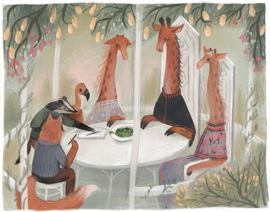 Барсук Старший вежливо пододвинул блокнот поближе к жирафу Рафу.