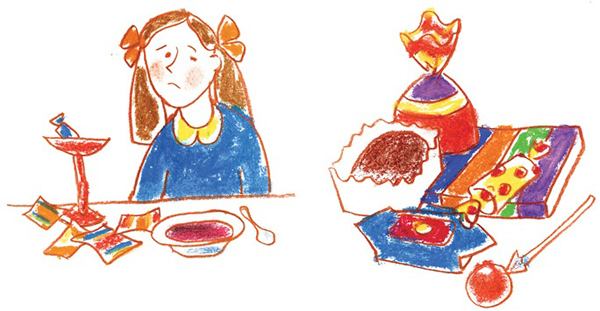 Но если съесть много конфет, заболят зубы и живот это плохо.