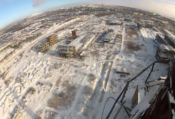 Тот самый бывший хлорный цех Амурского ЦКК. Впереди прямо и слева виден микрорайон, в котором мы жили. Фото из архива