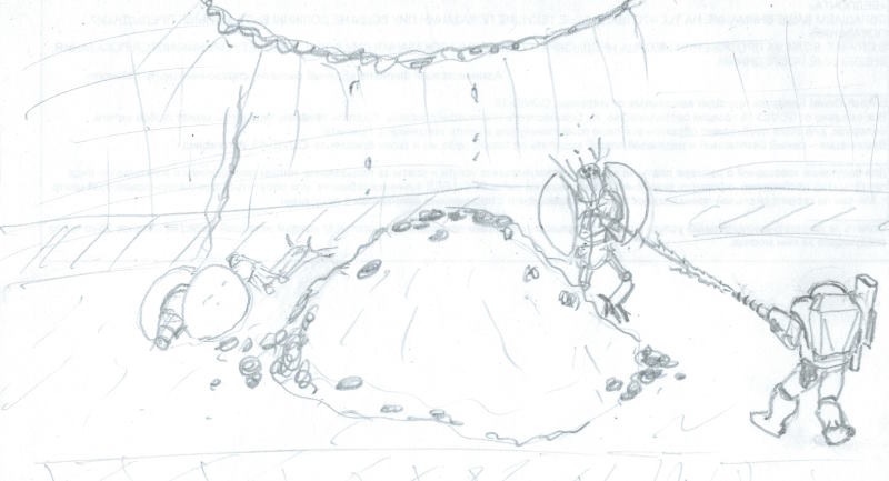 Группа из 5-и дронов появилась из-за угла внезапно. Тут же им на встречу полетела граната и послышались воющие звуки электромагнитных разрядов. 2 дрона упали сразу же. Один потерял конечности в результате взрыва. Их оторвало ударной волной. 2-й попал под перекрестный огонь сразу 2-х ЭМИ-винтовок. Вспышки ответных лазерных импульсов разрезали мрак тоннеля. Один из бойцов, что был по левую руку Брода, громко и пронзительно закричал. Вместо ноги у того дымился обрубок выше колена. На руке же отсутствовало сразу 4 пальца.