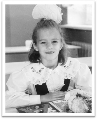Два года я ходила в подготовительный класс, сидела всегда за первой партой так всем было спокойней. Шло время, вот и первый класс. 1996 год. На мне была надета белая рубашка, волосы собраны в хвост и украшены большим бантом. Двадцать девять учеников собрались в одном классе, чтобы учиться вместе одиннадцать лет и закончить этот путь, конечно же, с аттестатами. Мне тогда пришлось стать обычным человеком, как мои одноклассники, я не хотела выделяться. Мне пришлось научить себя, свой организм обходиться без коляски, отправляясь в путь на дальние расстояния. Мы с мамой всегда в школу выходили рано, шли медленно, с каждым днём увеличивая расстояния: ты делаешь ещё шаг, и ещё, и вот ты наконец-то у цели. Через некоторое время я уже передвигалась, как обычный ребенок, на длинные расстояния, без коляски. В возрасте семи лет мне было непонятно, почему другие дети живут без ограничений, а я то в коляске, то на санках. Да, я знала, что у меня такой диагноз, но ребёнку трудно понять. С первого по третий класс мы учились в одной школе, у нашей любимой первой учительницы, мы вспоминаем о ней всегда с теплотой. Мама в первом классе сидела на уроках, ей было так спокойнее. Это продолжалось недолго. Я тогда не понимала, почему не сидят другие родители со своими детьми, и однажды попросила маму больше не присутствовать на уроках. Я вполне освоилась в классе, да и кабинет у нас был один, лишь на музыку, физкультуру и в столовую мы выходили из класса. Были еще, конечно, перемены, во время них ученики выходили в коридор по желанию. Кто-то оставался в классе, повторяя заданное упражнение, а кто-то проводил активно время: бегал, прятался, веселился.
