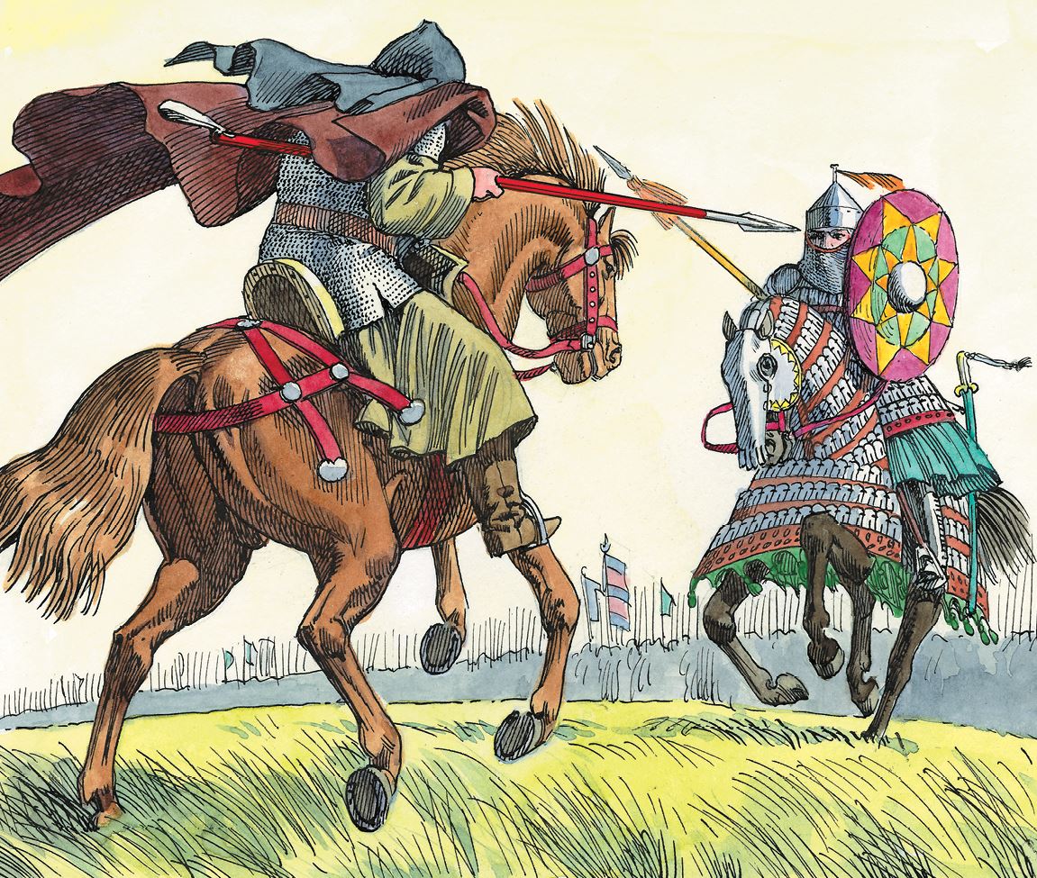 Челубей красавец, и конь у него красавец. Сам богатырь, и конь под ним богатырский. И пика всем пикам пика.