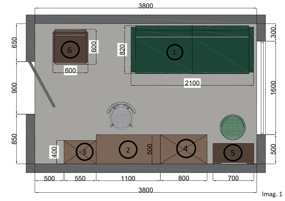 Расположение на картинке (imag4) выгодно с учетом того, что у нас много свободного места в комнате, доступ свободен в любую зону, и в спальную зону и к письменному столу и к столику для макияжа, единственное, что должно следует учитывать тот факт, что кровать находится перед окном, что мы не можем себе позволить ни в одной комнате, в случае данной комнаты это допустимо, т.к. окно находится на большой высоте 1300, общая высота помещения 2900м.