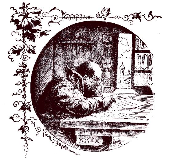 Недолго оставался он в этом положении; полуденное солнце, настойчиво врывавшееся чрез небольшие открытая окна горницы, разморило тучного дьяка. Он, прислонившись спиною к стене, через минуту мирно захрапел, представляя полную возможность мухам ползать по его потному лицу.