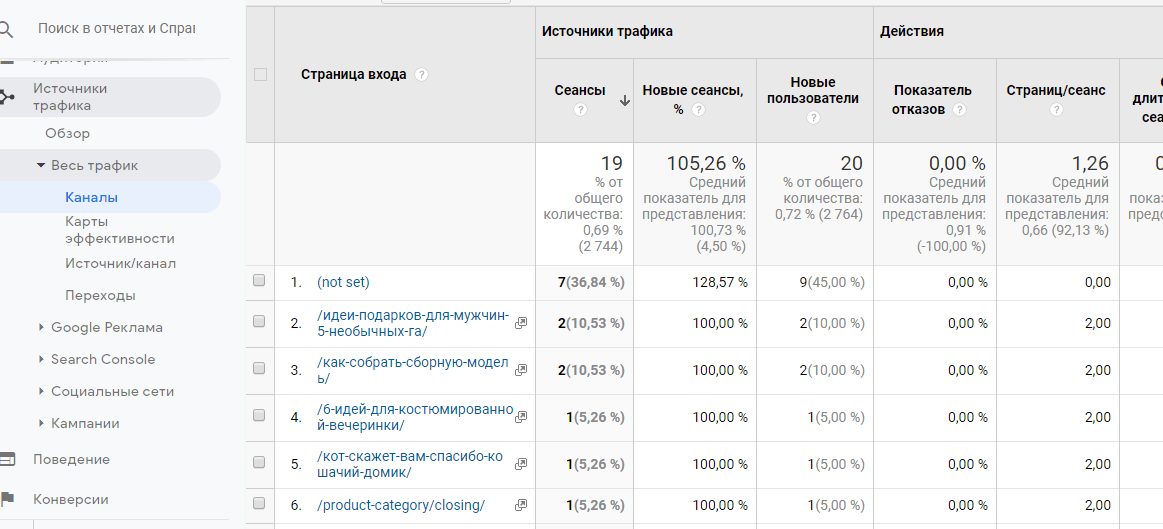 В результате вы получите список ключевых слов и источников трафика, по которым посетители попадают на страницу. Информация улучшит понимание, что именно ищут люди и даст идеи для изменения или дополнения контента для улучшения позиций в поиске.