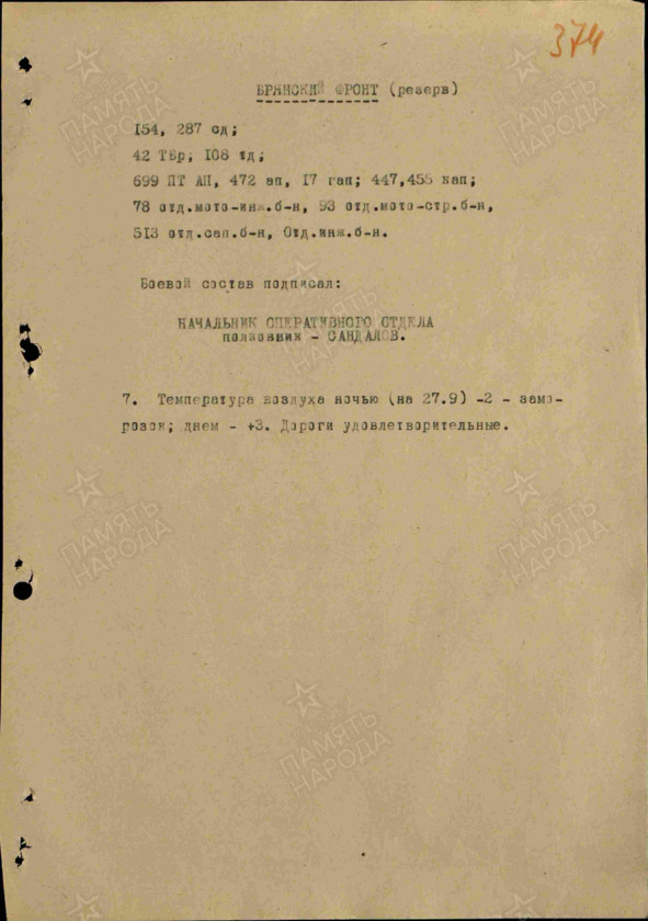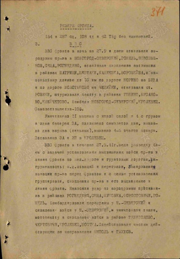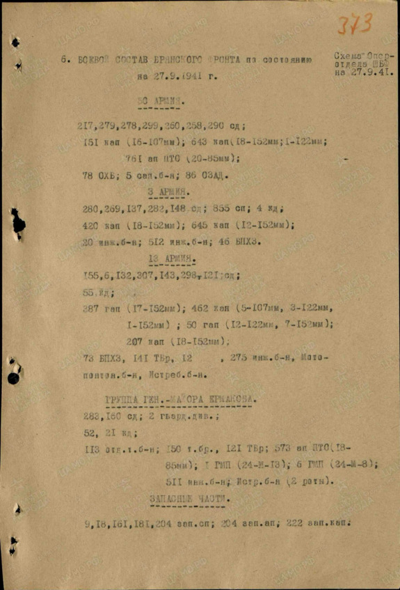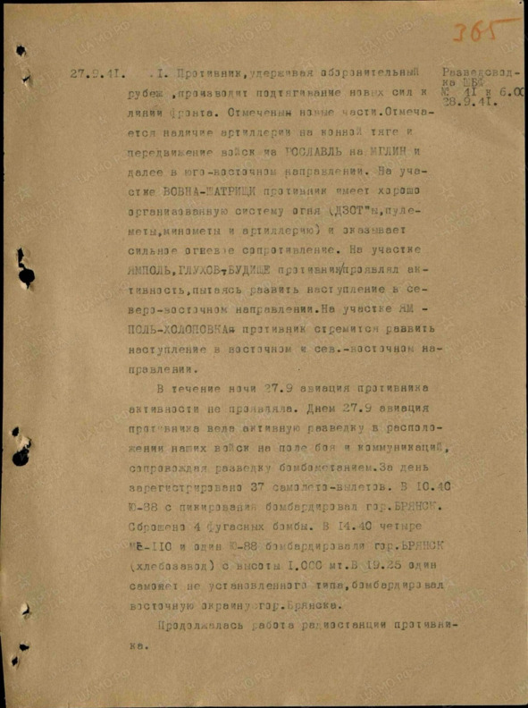 Журнал боевых действий Брянского фронта за 27.09.1941.