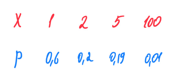 Теперь разберу концепцию начальных и центральных моментов, очень важную для математической статистики. Для этого возьму произвольный набор данных, в котором для каждого значения известна вероятность.