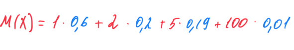 «Математическим ожиданием дискретной случайной величины называют сумму произведений всех ее возможных значений на их вероятности» (Гмурман, стр. 76).
