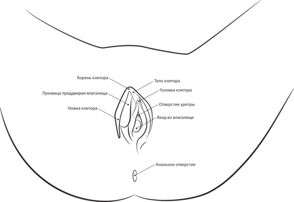 Давайте же найдем наконец этот неуловимый клитор. Взглянем на изображение женских половых органов. Как можно видеть, клитор это не крошечная спрятанная пуговка, а довольно большой орган, который состоит из нескольких частей. Видимая часть это капюшон клитора и головка клитора. Головка может иметь разные размеры: у некоторых женщин ее видно, у других она становится различима во время сильного возбуждения, а у некоторых и в этом случае остается невидимой. Этим и объясняется неуловимость клитора.
