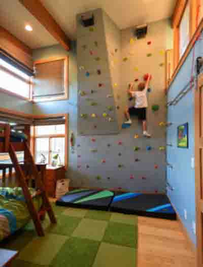 С 60-х годов XX века в детских комнатах появляются спортивные комплексы. Сначала обычные шведские стенки, затем более сложные сооружения. Развивается их промышленное производство. Но, домашние детские спортивные тренажёры до сих пор являются скорее исключением, чем правилом. Одна из последних тенденций «скалодромы». В то же время, следует учесть, что, несмотря на достаточно длительную практику разработки спортивных комплексов для детей, актуальными остаются вопросы безопасности. Впрочем, даже двухъярусную кровать нельзя назвать абсолютно безопасным местом (можно найти любопытную статистику, свидетельствующую о том, что в мире, ежегодно, около тысячи человек гибнет, падая с обычной кровати, и ещё больше людей гибнет, поскользнувшись в ванной).