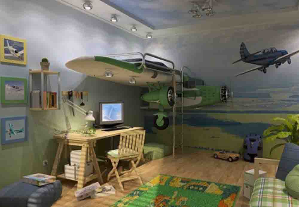 Поверхностное знакомство с современными детскими интерьерами производит хорошее впечатление красиво, ярко, многоцветно, эффектно, и, кажется, вполне оправданно. При внимательном рассмотрении, можно обнаружить некоторые характерные приёмы. Самый распространённый стремление подчинить общее решение ведущей теме, причём теме, желательно, символически детской. А поскольку, с такой темой ассоциируется, в первую очередь, мультипликация, то можно встретить множество интерьеров с Микки-Маусом, Золушкой, или целой компанией персонажей (желательно из одного мультфильма) размноженных по всем поверхностям мебели, тканям, стенам. Считается, что, раз дети ещё не готовы внятно сформулировать свои желания, то любой «интересный», с точки зрения взрослого, интерьер, ребёнку понравится. У детей постарше, как правило, интересуются: что им нравится, что им интересно? Результатом может быть довольно дорогой интерьер в автомобильной, морской, пиратской, авиационной, футбольной и прочей тематике. Зачастую здесь встречаются очень оригинальные решения.