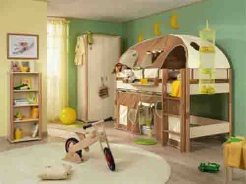 Большое распространение получили двухъярусные кровати. Примечательно, что если такие кровати первоначально использовались для того, чтобы решить проблему нехватки пространства, то позднее они стали типичным элементом и в весьма просторных помещениях для одного ребёнка, поскольку многим детям нравится спать наверху. Постепенно двухъярусная кровать стала модной и дизайнеры разработали великое множество вариантов.