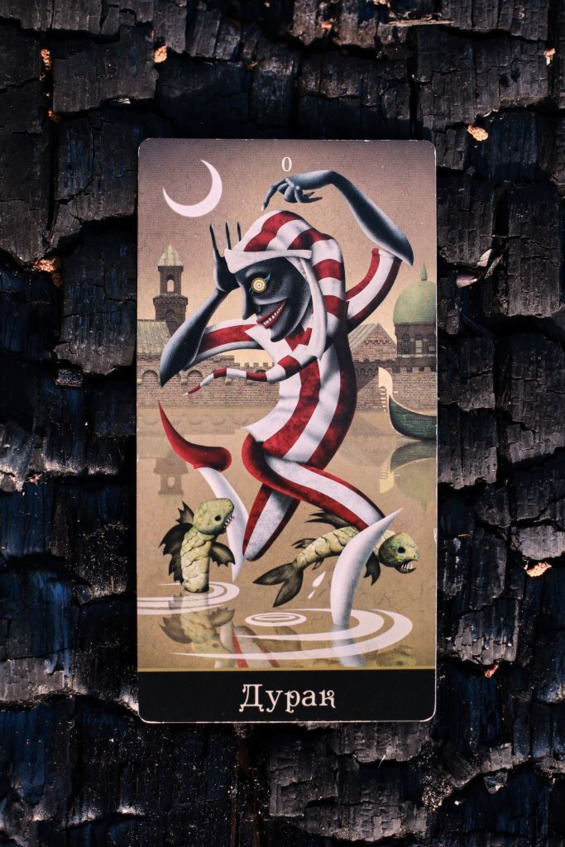 Вода символ бессознательного, в ней скрыты тайные знания, которые не доступны никому, кроме рыб. Рыбы часто ассоциируются с возрождением, плодовитостью, достатком и изобилием. Но поскольку мы явно видим на карте двух хищниц, неизбежно то, что наш Дурак в скором времени познает не только тайны жизни, но и алчность, тщеславие и надменность.
