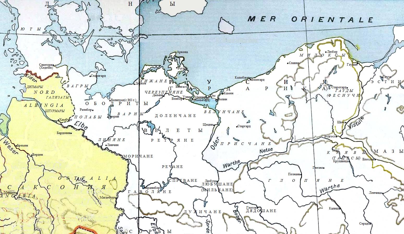 В заключение следует заметить, что первопроходцами на Балтийском море являлись венды, отчего финны называют и русских venalainen6. Что же касается третьей области руссов, которых латинские авторы именуют восточными ободритами7, она находилась на южном побережье Балтийского моря. Границы Русции, или Рузии8, со временем менялись, но именно ее скандинавы называли Гардарикой, а поляки позже Поморьем.