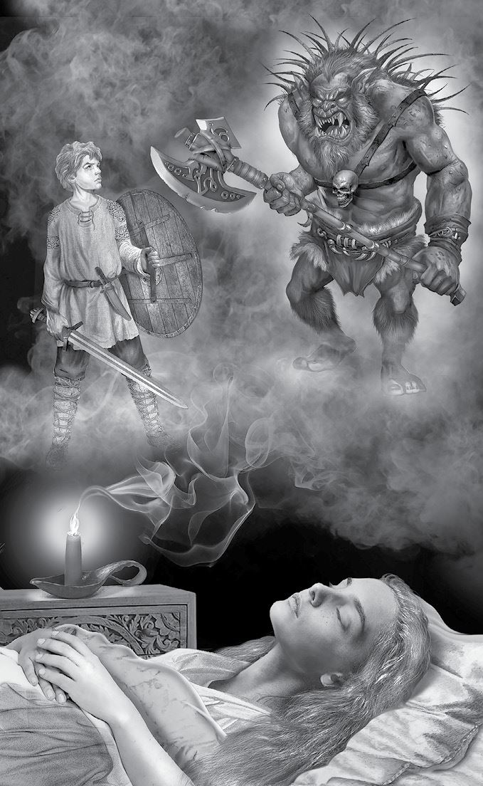 Привиделся ей нурманский воин, страшный, как тролль. Или, может, это и был тролль? Он стоял словно бы в сумрачной пещере, перекрывая собой выход из неё. В его руке блестела огромная секира. Тролль ухмылялся во всю пасть, да так, что мороз пробирал от этой холодной, жестокой усмешки. Так смеются, глядя на гибель невинных Даже во сне было жутко глядеть на него а Радим стоял против него со щитом и мечом!