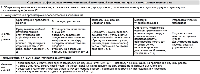 Таким образом, основываясь на вышесказанном, можно сделать вывод, что ПКИК педагога вуза должна включать три группы иноязычных макрокомпетенций:
