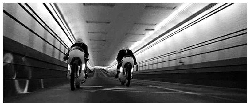 А вот несущиеся на скорости мотоциклы из фантастики Джорджа Лукаса «THX 1138» 1971 года.