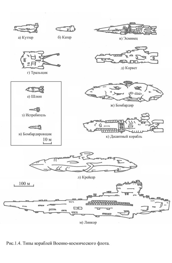 Истребитель. Корабль малого класса, предназначенный для уничтожения техники (прежде всего кораблей) противника. Их стремятся сделать как можно меньше размерами и повысить манёвренность. Обычно без гиперпривода, но с аэродинамическим вооружением для движения в воздушной и водной среде.