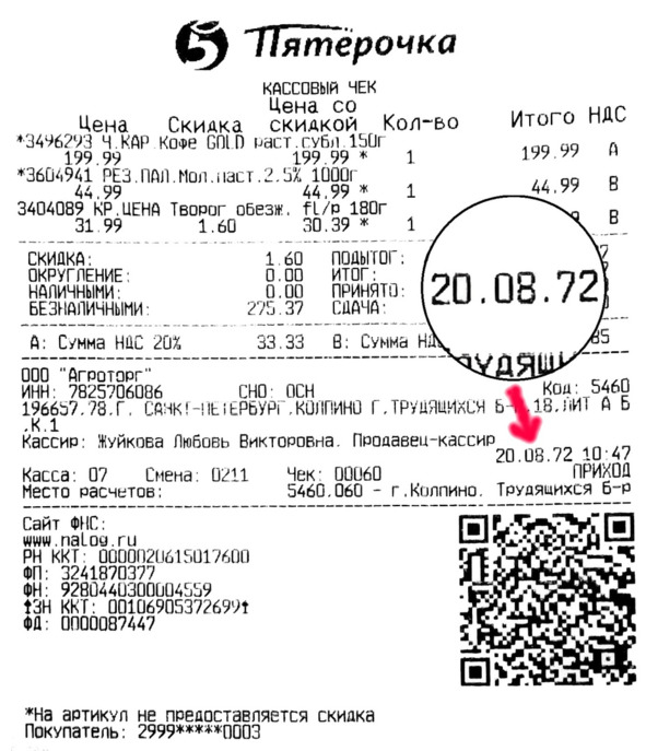 Что во всём этом неправдоподобно? На мой взгляд, только одно: что и в 2072 всё ещё будут существовать эти чуханские «Пятёрочки», а в них чеки продолжат печатать в точности так, как сегодня. В остальное с трудом, но готов поверить, даже в инопланетянское вмешательство, а вот в это нет, хоть режьте. Стало быть, это всё же затея наших современников, и причём не самых изощрённых, если даже я прекрасно соорудил на компе чек из далёкого будущего.