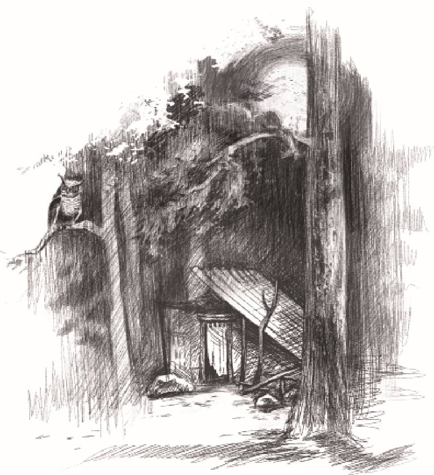 Вот и шалаш. Сквозь шторку для ванны наружу пробивались слабые лучики света, едва достигая ближайших деревьев.