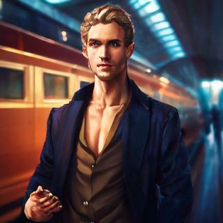 Но самым примечательным была не внешность посла. Вагон был оборудован под кабинет с огромным кожаным диваном, столом и креслом. Собственно, на столе всё самое интересное и происходило. На нем спиной к нашей недружной компании сидела обнаженная девушка, светлые волосы практически полностью скрывали ее загорелую спину, а между ног у нее и расположился этот необыкновенно красивый мужчина.