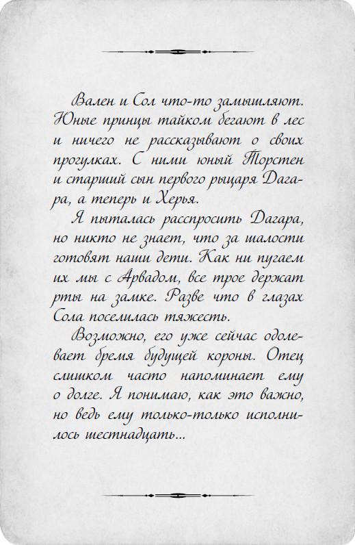 Мне всегда говорили, что Арвад и Лилианна были злобными и жестокими и обрекли на смерть кучу людей. Но чем дольше я читаю, тем больше понимаю, как мудро и справедливо они правили. Как любили друг друга и своих детей. Я опустила глаза. А мой народ убил их и уничтожил их дом. Я просто хочу, чтобы эта земля стала такой, как раньше.