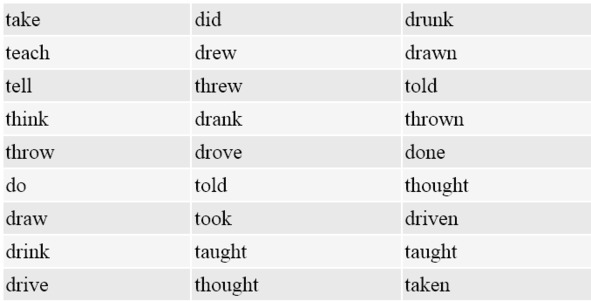 33. Matching ExerciseMatch the forms of the following verbs34. Matching ExerciseMatch the forms of the following verbs