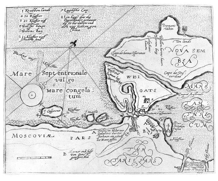 Карта Новой Земли из сборника Meer oder Seehanen Buch. Cöln: Bertram Buchholtz, 1598. John Carter Brown Library