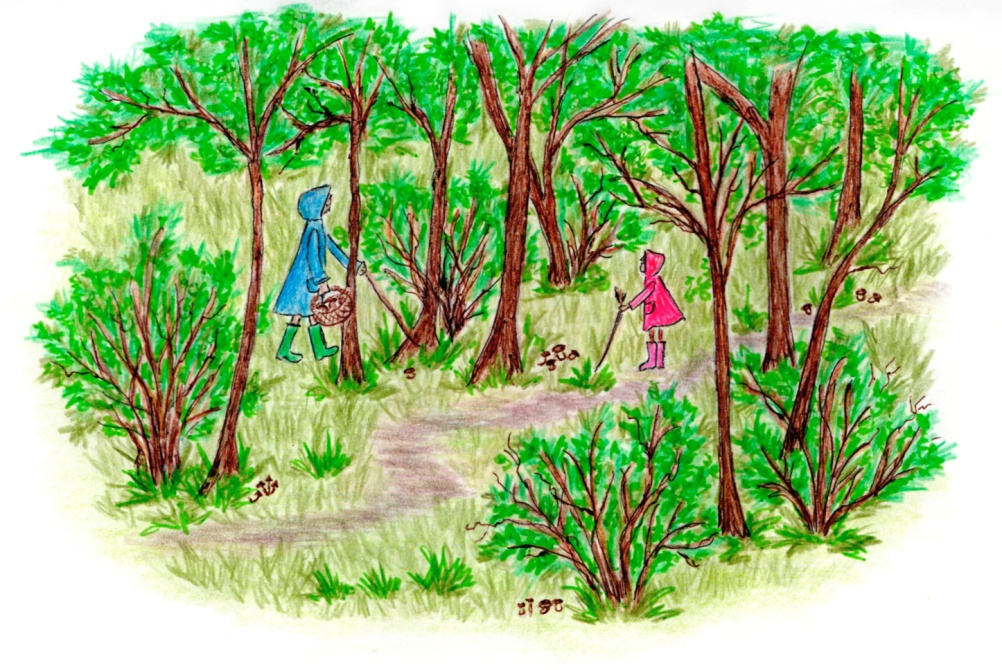 Бабушка нашла крепкую длинную палку себе и маленькую, под мой рост, палку мне. Сначала мы идем вместе, заглядываем под каждый кустик, обходим вокруг каждого дерева. Бабушка показывает, что густая мокрая листва под деревьями кое-где приподнимается небольшим бугорком. Вот этот бугорок нужно осторожно палочкой разгрести от листьев. Раздвигаешь мокрую листву, а там коричневая шляпка вас приветствует ваш первый гриб!