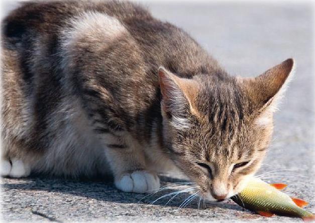 Кот Мурзик с удовольствием съел одну рыбку и стал лапкой умываться. А бабушка спросила кота: