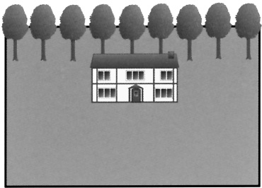 Неблагоприятная планировка (рис. 2 б). Участок имеет правильную прямоугольную форму, однако дом слишком смещен назад. Высокие деревья, посаженные вдоль тыльной стороны участка, не играют позитивной роли с точки зрения фэншуй. К тому же при сильном ветре какое-то из деревьев может упасть прямо на дом.