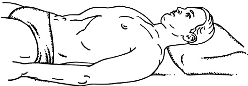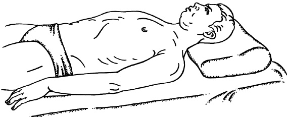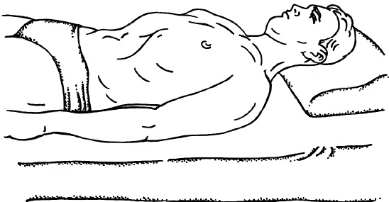 Упражнение выполняют в положении лежа. Голову следует поместить на подушку. Перед выполнением упражнения необходимо расслабить мышцы, выпрямить осанку. Плечи, живот и диафрагма должны быть неподвижны. В начале упражнения необходимо расслабиться, сосредоточиться и максимально выдохнуть весь воздух из легких (рис. 16).