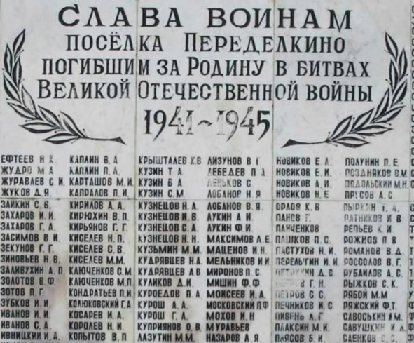 Памятник героям, павшим в ВОВ, жителям п. Переделкино