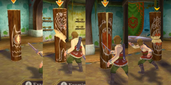 Чтобы научить игрока обращаться с мечом, ему дают потренироваться на брёвнах, на которых имеются зарубки, наглядно подсказывающие правильное направление удара.