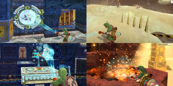 К физическим характеристикам, намекающим на правильное взаимодействие относятся сыпучие и горячие объекты. В игре встречаются целые комнаты заваленные песком, под которым можно найти, как смертельно опасные ловушки, так и полезные предметы (рис. 3). Также на пути игрока встречаются препятствия в виде раскалённой лавы, которые нужно остужать потоком воздуха (рис. 4).