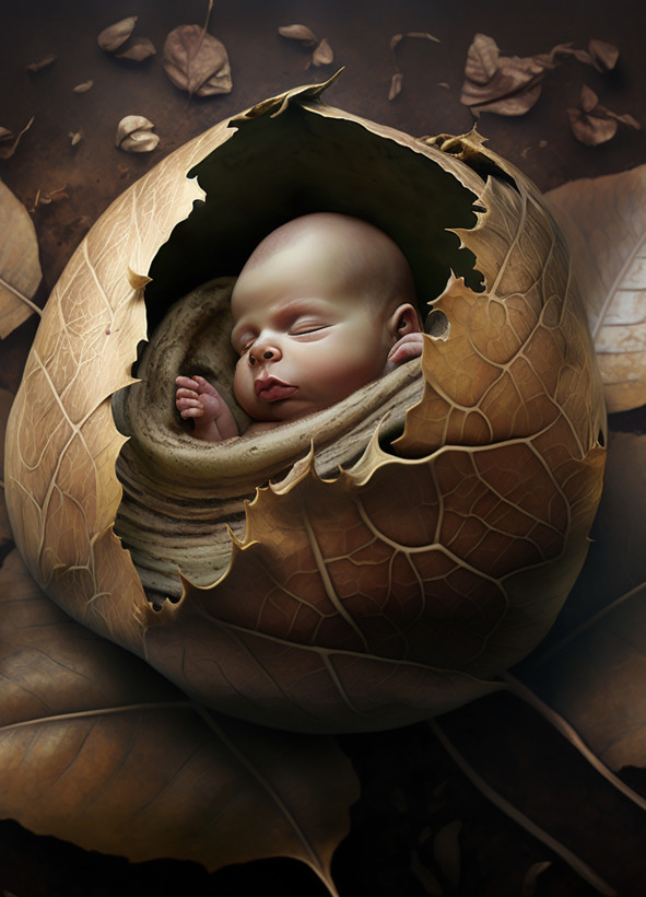 Панцирь раскрылся, подобно раковине двустворчатого моллюска, и обнажил жемчужину, покоящуюся на дне. Скорлупка рака-отшельника таила в себе крошечное тельце новорождённого. Он был покрыт тонкой слизистой плёнкой, ручки и ножки плотно прижаты к туловищу, головка повёрнута набок и вжата в плечи. Ретроспектор предложил мне взять на руки младенца в беспомощной безмятежности его хрупкого сна. Я принял ношу не без опаски, меня испугала воздушная невесомость дышащего незаметной жизнью тельца. Так мы двинулись дальше по горячему песку с бесценным грузом чужой только что зародившейся жизни в руках.