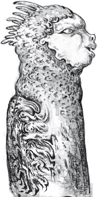 Вот тогда и появился тот человек, поначалу казавшийся невысоким и сгорбленным, словно плащ с капюшоном из грубой холстины прикрывал нечто бесформенное, прыгающее на согнутых ногах. Он как будто вырос из сугроба и покатился к сломанной повозке, все ближе и ближе, и по мере того как он катился, змейки собирались вокруг него, обвивали его ноги, ползли вверх по рукам, к горлу. Наконец он выпрямился и оказался высоким и тощим. Лицо его, если бы он не корчил рожи, могло показаться молодым и миловидным, однако безобразные гримасы, непрерывно сменявшие одна другую, не позволяли чертам застыть, и, таким образом, рассмотреть его как следует было невозможно.