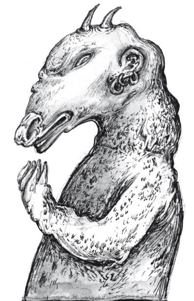 Спустя бесконечно долго время существо моргнуло, а когда открыло кожистые веки, то глаза его на короткий миг встретились с моими. И на сей раз это был осмысленный взгляд. Длилось это совсем недолго, но успело пробраться в самую глубину моего естества и понатыкать там иголок. У меня вдруг разом заболело все чрево. Происхождение этой боли было, несомненно, сверхъестественным, но открыть данное обстоятельство я никому не мог и потому, с внезапно исказившимся лицом, лишь вскрикнул: «Тушеная капуста!» и устремился к выходу.