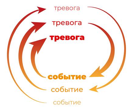 Агорафобия с паническими атаками часто начинается тогда, когда клиент «вдруг» обращает внимание на «слишком сильное» сердцебиение и одышку. При этом тахикардия и одышка является нормальной реакцией организма на жару или физическую нагрузку. Этим самым начальное легкое чувство тревоги связывается с сердцебиением, одышкой, спазмами, головокружением, тошнотой или другими нормальными физиологическими реакциями организма. С этого момента начинает образовываться порочный невротический круг. Клиент снова и снова прислушивается к ощущениям своего организма, ожидая возможного появления неприятных ощущений. Само это ожидание уже свидетельствует о выраженном беспокойстве, которое может начать сопровождаться физиологическими проявлениями тревоги сердцебиением, одышкой, головокружением, тошнотой и т. д. В результате то, чего клиент «ожидает», и начинает происходить. Факт появления нежелательных физиологических проявлений в качестве негативно оцениваемого события многократно усиливает неприятные чувства клиента, которые, в свою очередь, еще сильнее усиливают нежелательные физиологические проявления. Таким образом невротический круг замыкается, и начинается накручивание невроза, в котором с каждым витком тревога и физиологические проявления становятся все сильнее. Через месяц-другой мы видим полноценный невроз, когда только от одной мысли у клиента возникает целый букет невротических физиологических проявлений. Развившийся невроз причиняет клиенту страдание и существенно ограничивает его жизнь.