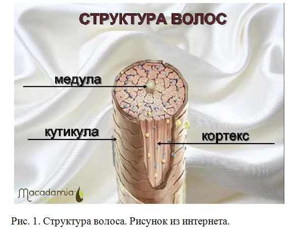 Внутри ствола волоса находится мозговое вещество медула и среднее корковое вещество кортекс, а снаружи имеется внешняя оболочка кутикула (Рис. 1).