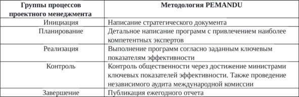 Таблица 1 сравнительная характеристика PEMANDU с группами процессов проектного менеджмента