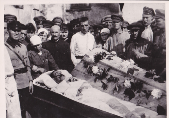 ГАПО. Ф.П-9961. Оп. 1. Д. 2167. Л. 3. Похороны коммунистов, погибших при подавлении белогвардейского мятежа в Невельском уезде. Октябрь 1918 г.