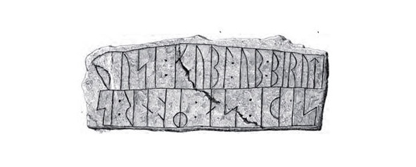 Рисунок 1. Сторона B рунического камня из Дании. Надпись читается как þusi: kubl: ub: biruti, что переводится как «Чародеем будет тот человек, который разрушит этот памятник».