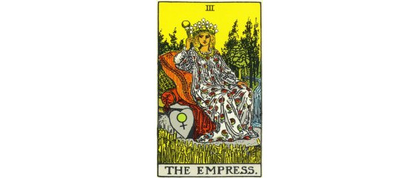 Центральная фигура на карте сама Императрица, олицетворяющая женственность, материнство, изобилие и заботу. Ее статичная поза и мягкие подушки олицетворяют пассивную роль, отсутствие активных действий. Присутствие Императрицы означает время роста, творчества и развития отношений.