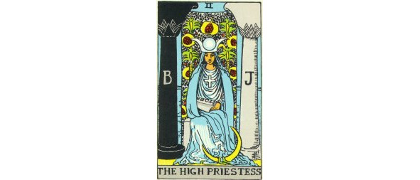 Полумесяц у ног Жрицы символизирует божественную женственность, интуицию и подсознание. Он представляет собой связь Жрицы со своим внутренним «я» и глубиной ее интуитивных способностей.