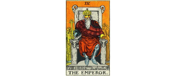 Император изображен сидящим на каменном троне, символизирующем стабильность, власть и могущество. Он представляет его положение как правителя и его способность управлять и принимать важные решения. Серый цвет трона символизирует здравомыслие, реализм. Император твердо стоит на земле, он не склонен витать в облаках и предаваться иллюзиям.