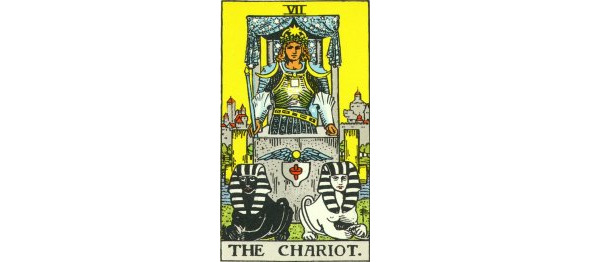 Сфинксы символ мудрости. Так как они впряжены в колесницу, они и есть движущая сила возничий сумел обуздать их, т.е. познать истину. Это и есть триумф разума. Цвета сфинксов, черный и белый, говорят о том, что и темные, и светлые стороны возница умеет обернуть себе на пользу, заставив их работать на себя.