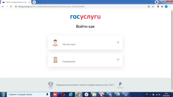 4. Войти как частное лицо.