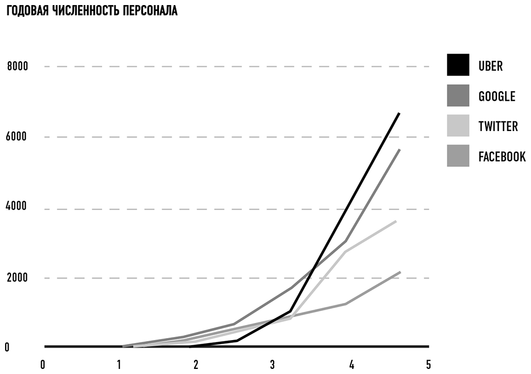 Когда я начинал работать в Uber, у нас было почти 1000 сотрудников, и каждые 6 месяцев становилось вдвое больше. Один мой давний коллега резюмировал: «Мы растем так быстро, что каждые полгода становимся новой компанией». Другой сразу заключил: «Вот почему наш бизнес-процесс с учетом роста персонала всегда отстает от желаемого результата на два квартала».