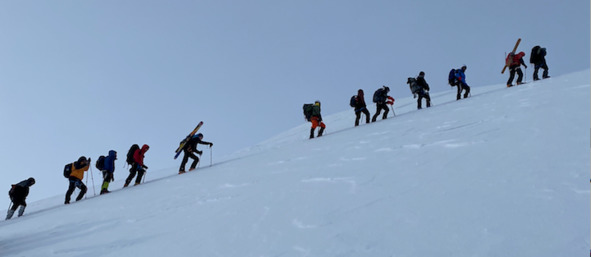 Фото. Команда Югры на вершине горы Нёр-Ойка. Февраль 2023 г.